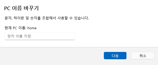 혹시 컴퓨터 이름에 개인정보가 포함되어 있는 경우라면 변경하고 싶을 수 있습니다.