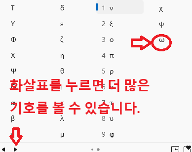 | → , ← , ↑, ↓ | ㅁ + 한자 키를 누르고 사용할 수 있는 방향 |